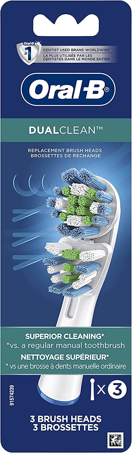 - Includes 3 Genuine Oral-B Dual Clean Electric Toothbrush Replacement Brush Heads