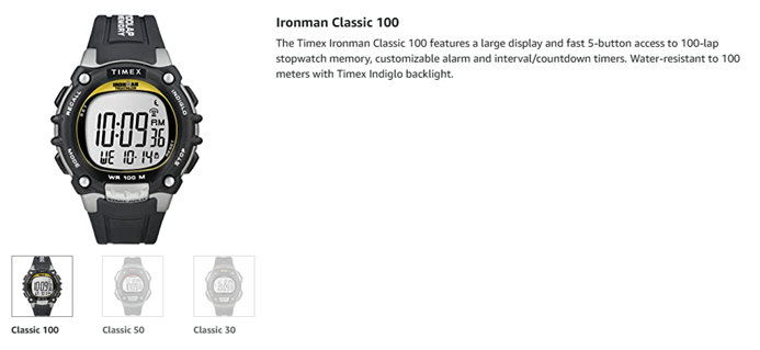 • 100-hour chronograph with 100-lap memory; interval training timer; 24-hour countdown timer