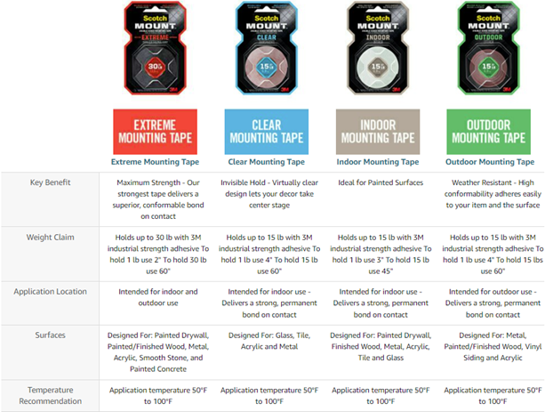 • Foam Mounting Squares can be used on wood, ceramic tile, gloss and semi-gloss painted walls, glass, and refrigerators