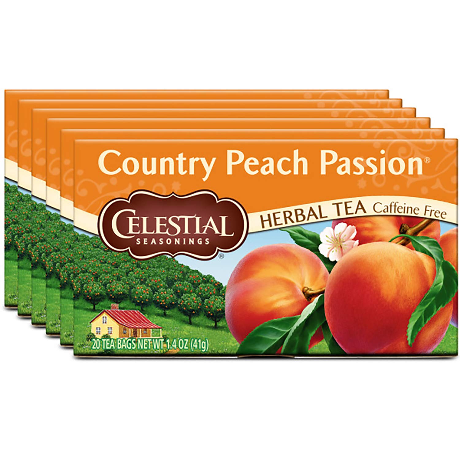 Celestial Seasonings Herbal Tea, Country Peach Passion, Caffeine Free, 20 Tea Bags (Pack of 6)