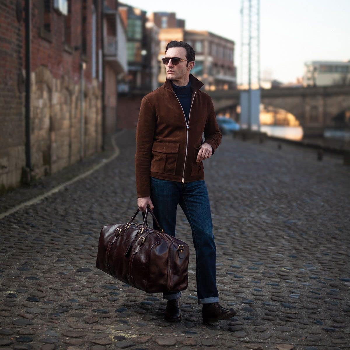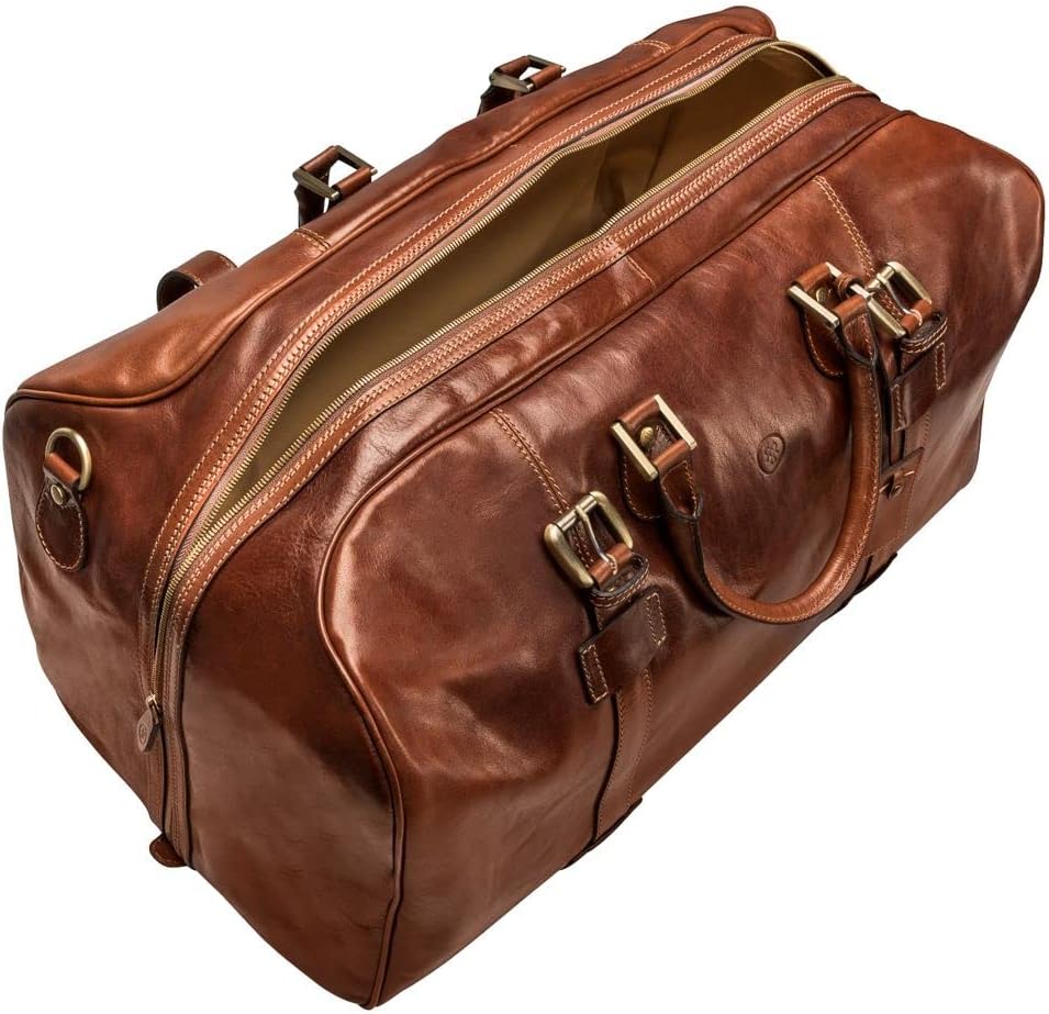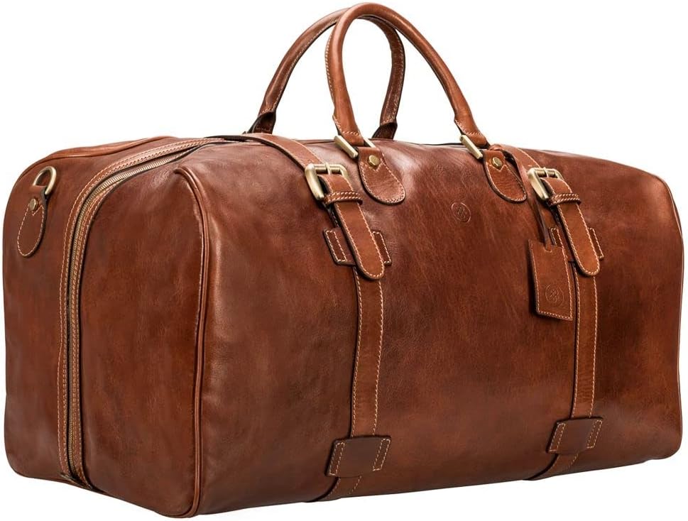 Maxwell Scott | Mens Quality Leather Extra Large Travel Bag | The FleroEL | Handmade In Italy | Chestnut Tan Brown