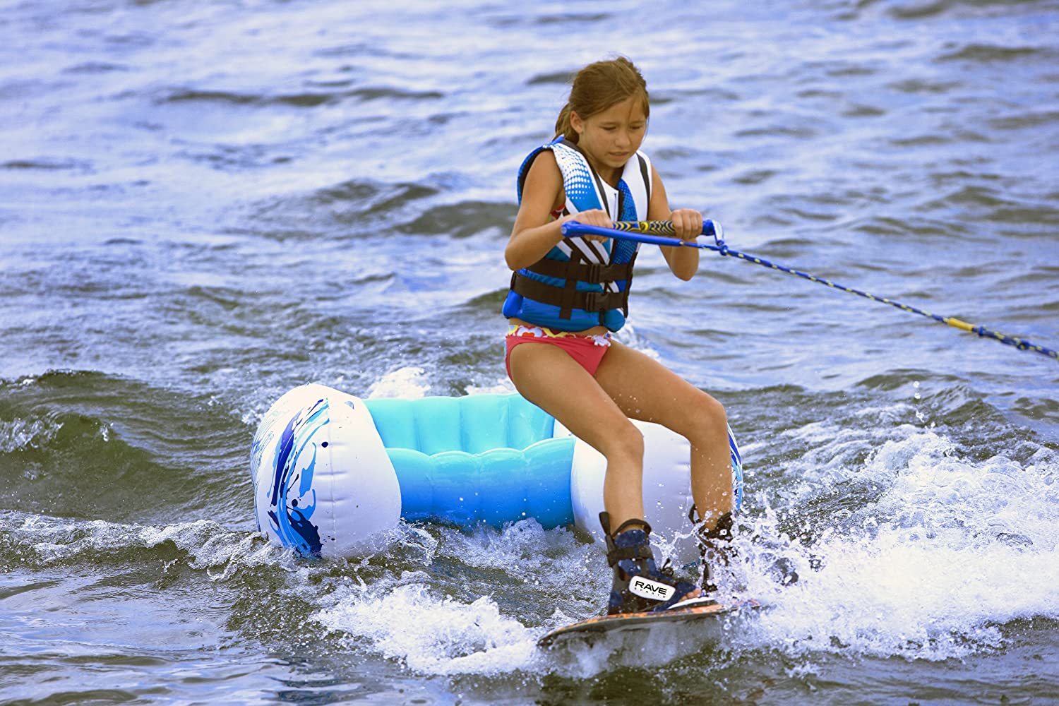 • LEARN TO SKI WITH EASE: Learning to water ski or wakeboard has never been easier! The RAVE Sports Aqua Buddy inflatable trainer is a unique tool that has helped hundreds of kids and adults.