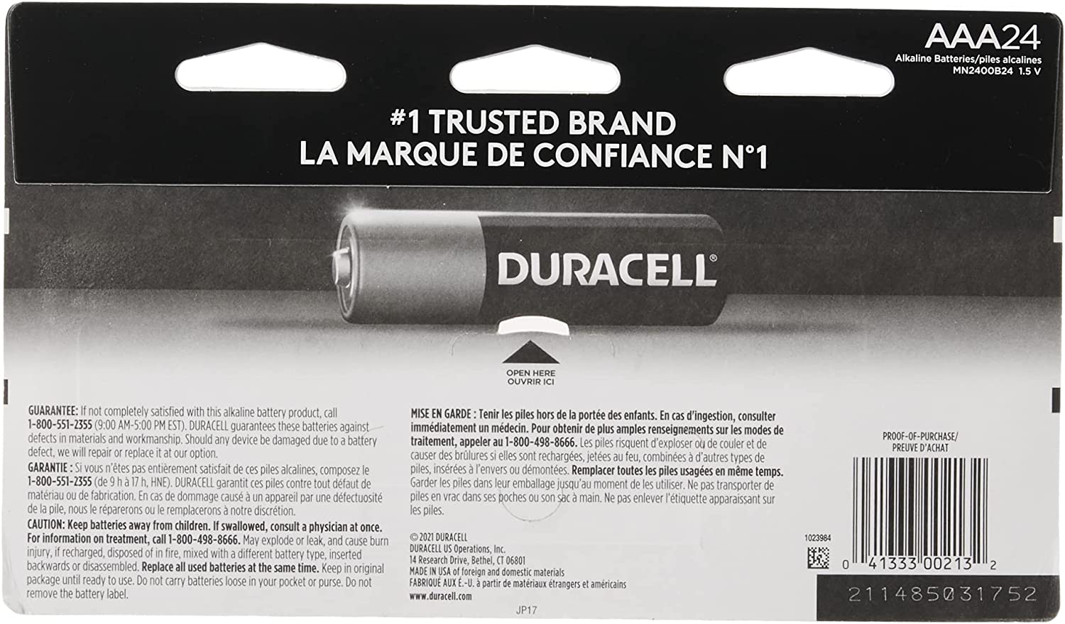Duracell Coppertop AAA Batteries with Power Boost Ingredients, 24 Count Pack Triple A Battery with Long-Lasting Power, Alkaline AAA Battery for Household and Office Devices