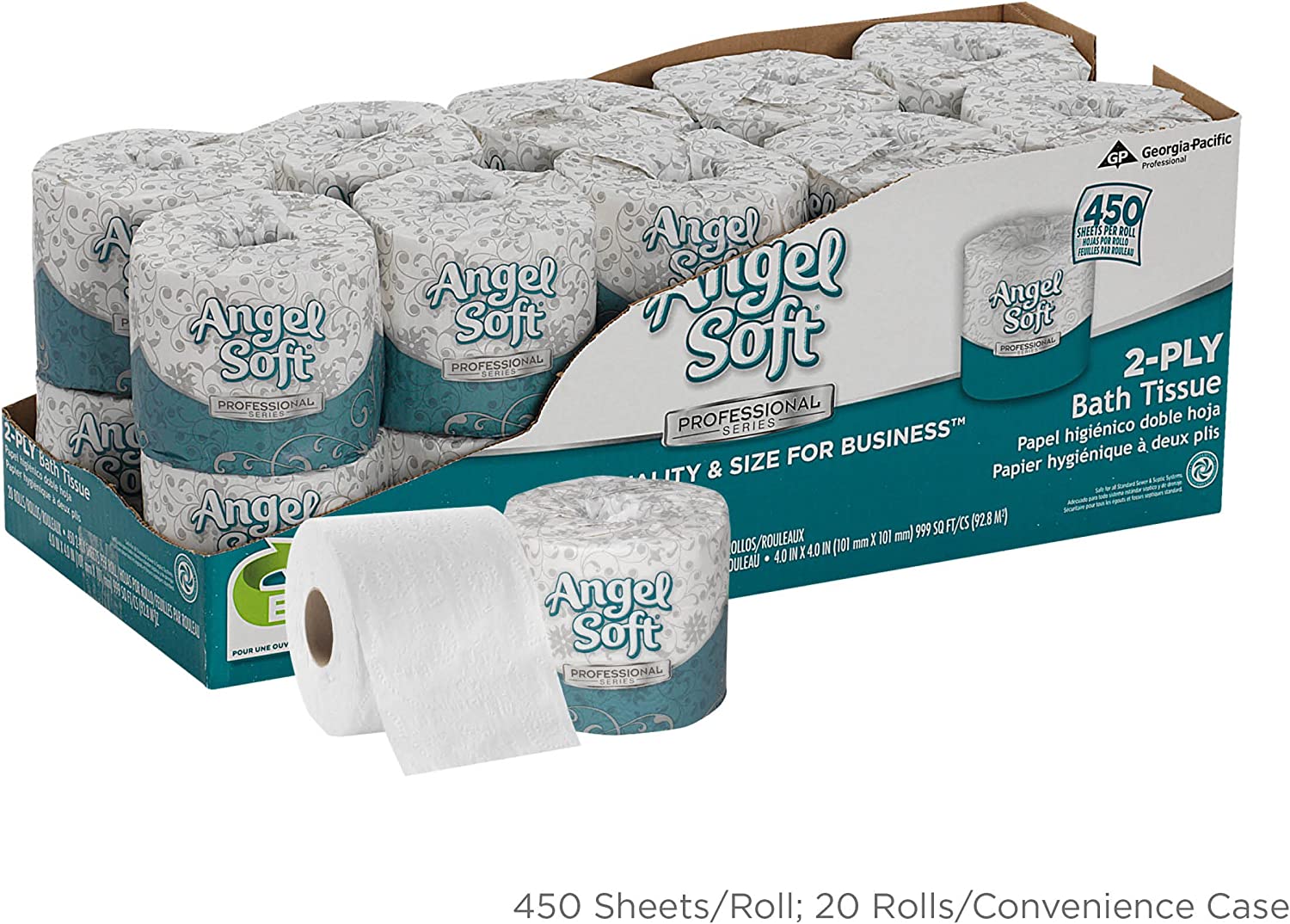 Georgia-Pacific Angel Soft ps 16880 White 2-Ply Premium Embossed Bathroom Tissue, 4.05" Length x 4.0" Width (Case of 80 Rolls, 450 Sheets Per Roll)
