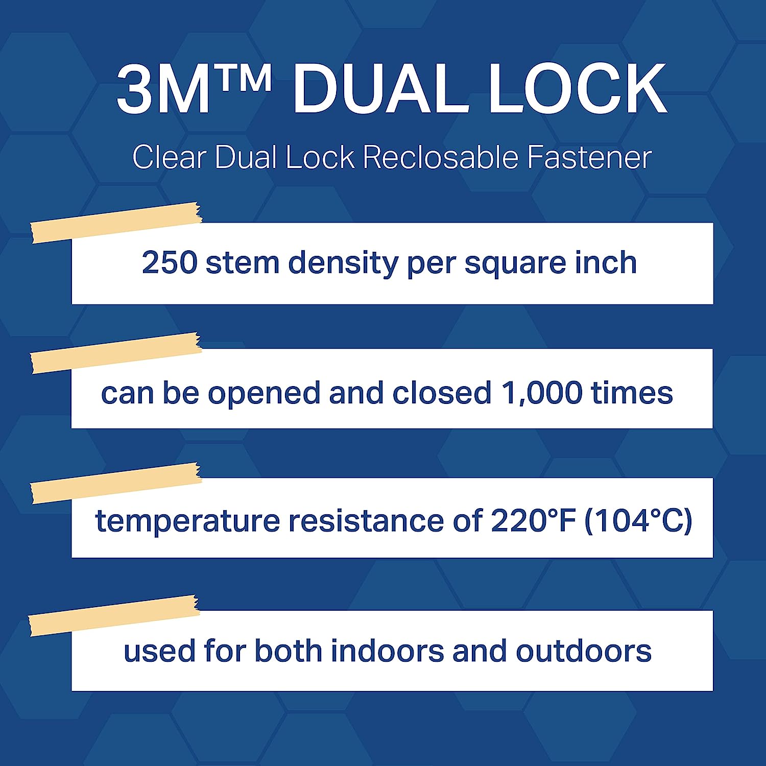- DURABLE: Our 3M Dual Lock Reclosable Fasteners secure with an audible snap, verifying closure while providing a strong, durable bond that is heat, chemical and UV resistant.
