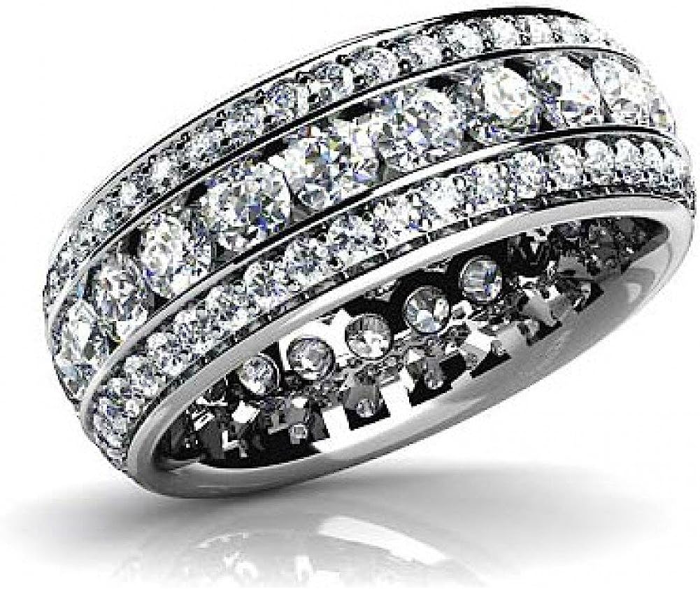 Madina Jewelry 5.00 ct Ladies Three Row Round Cut Diamond Eternity Wedding Band Ring in Platinum