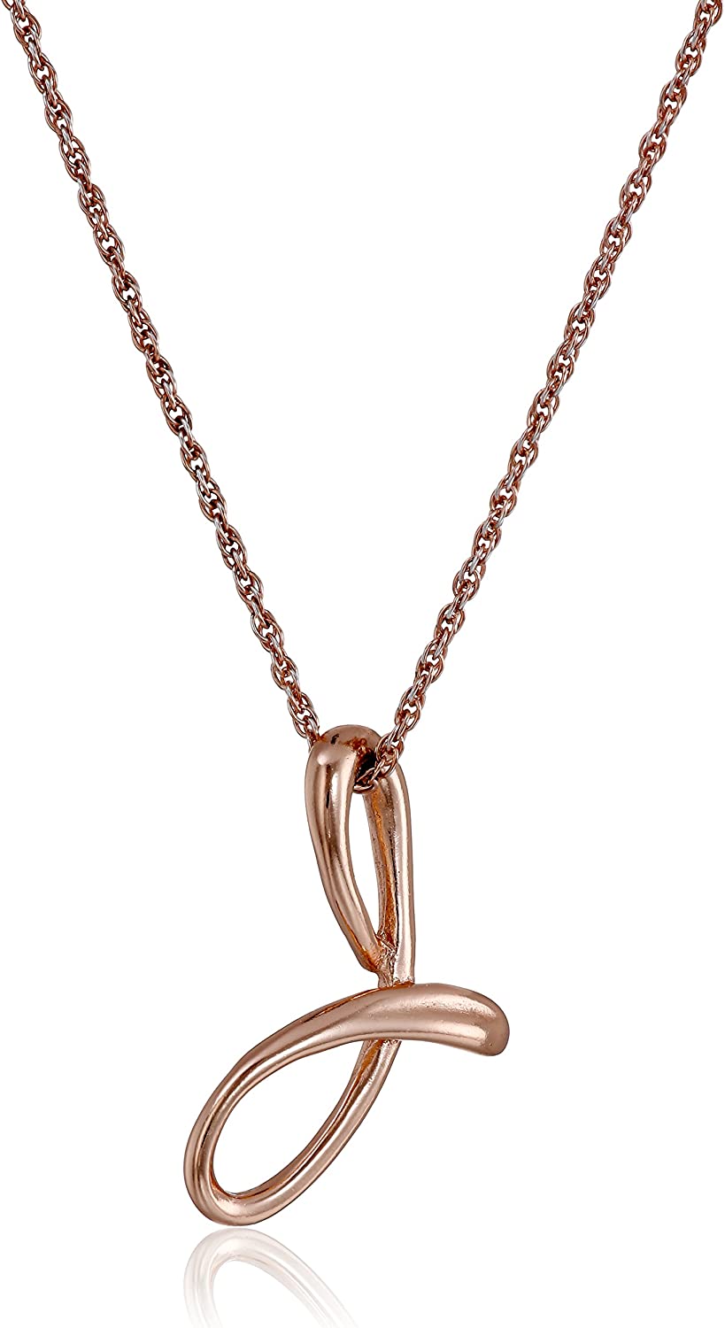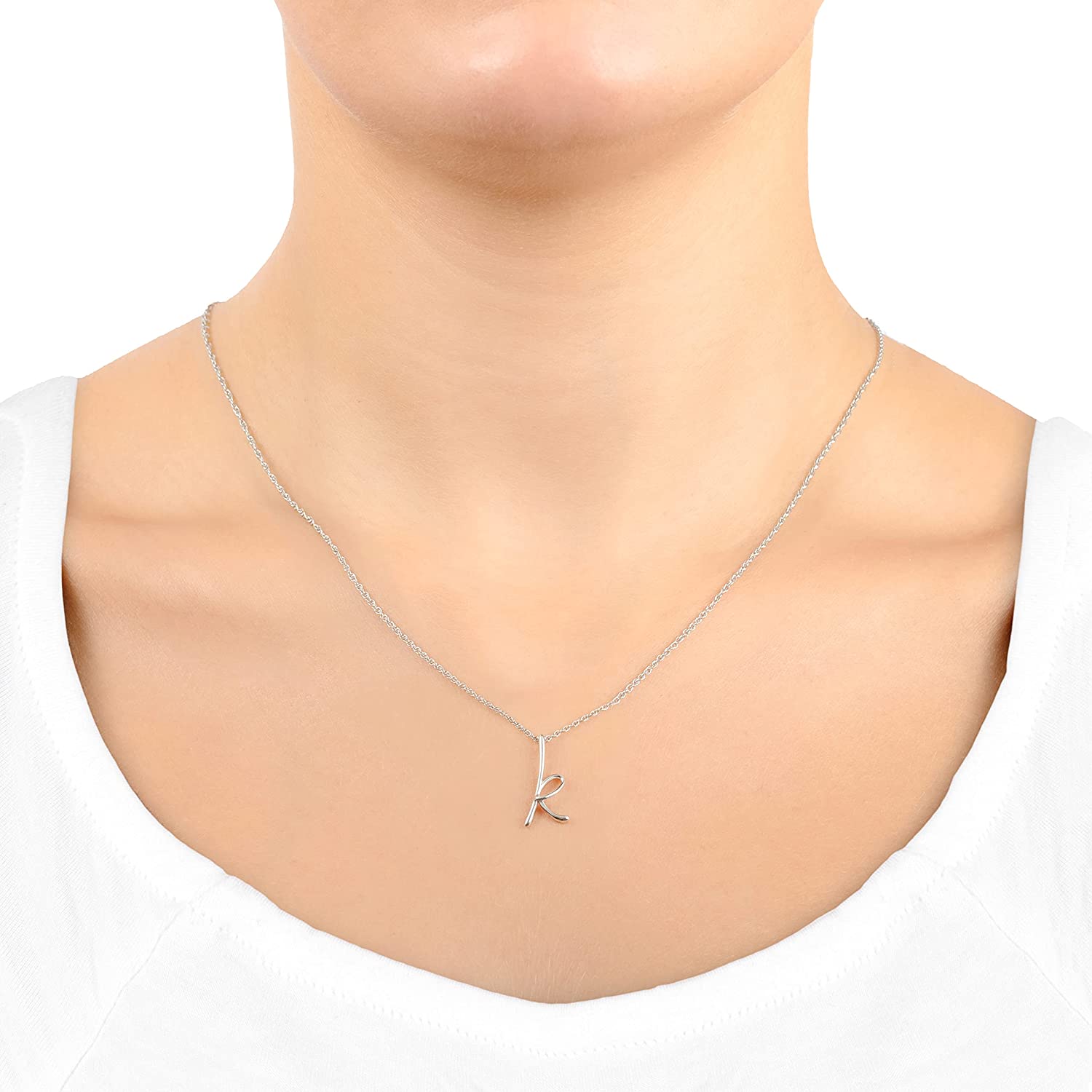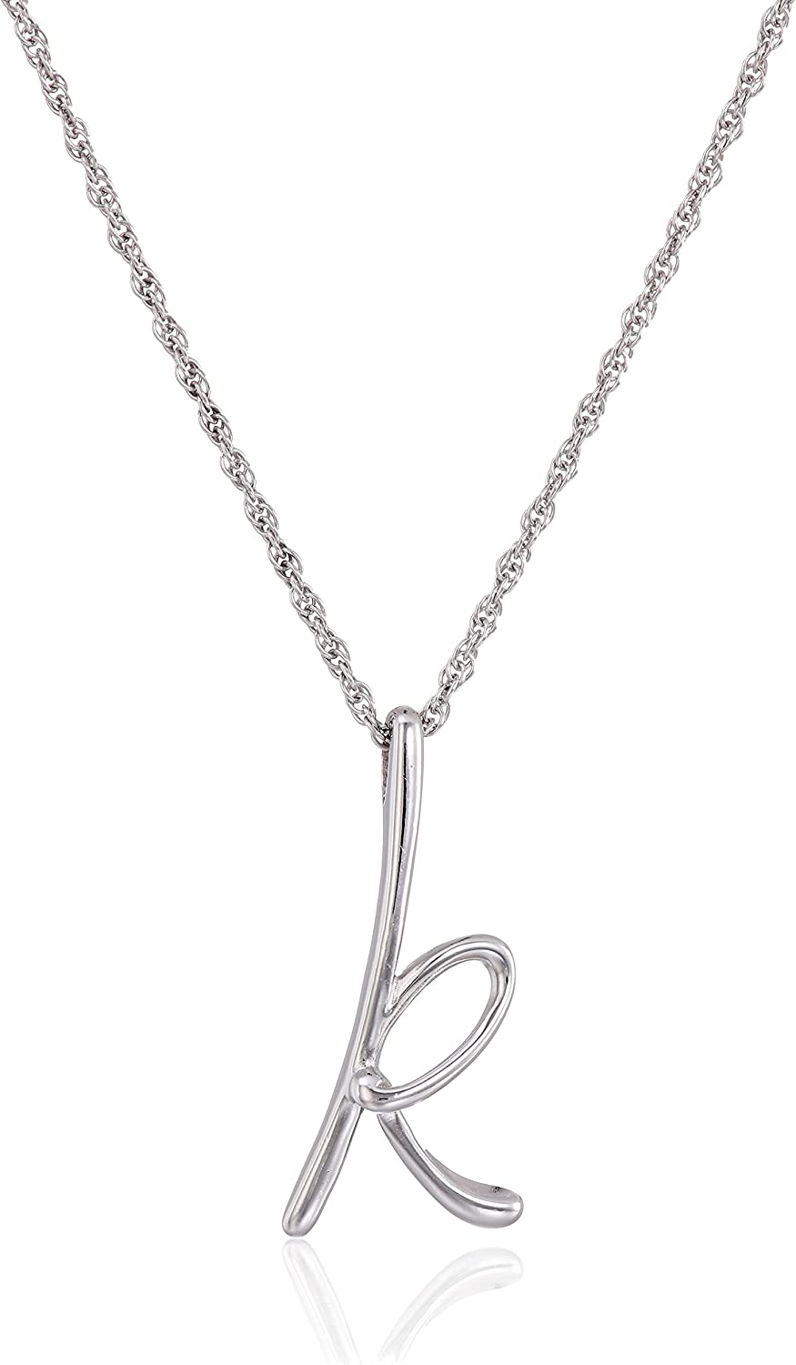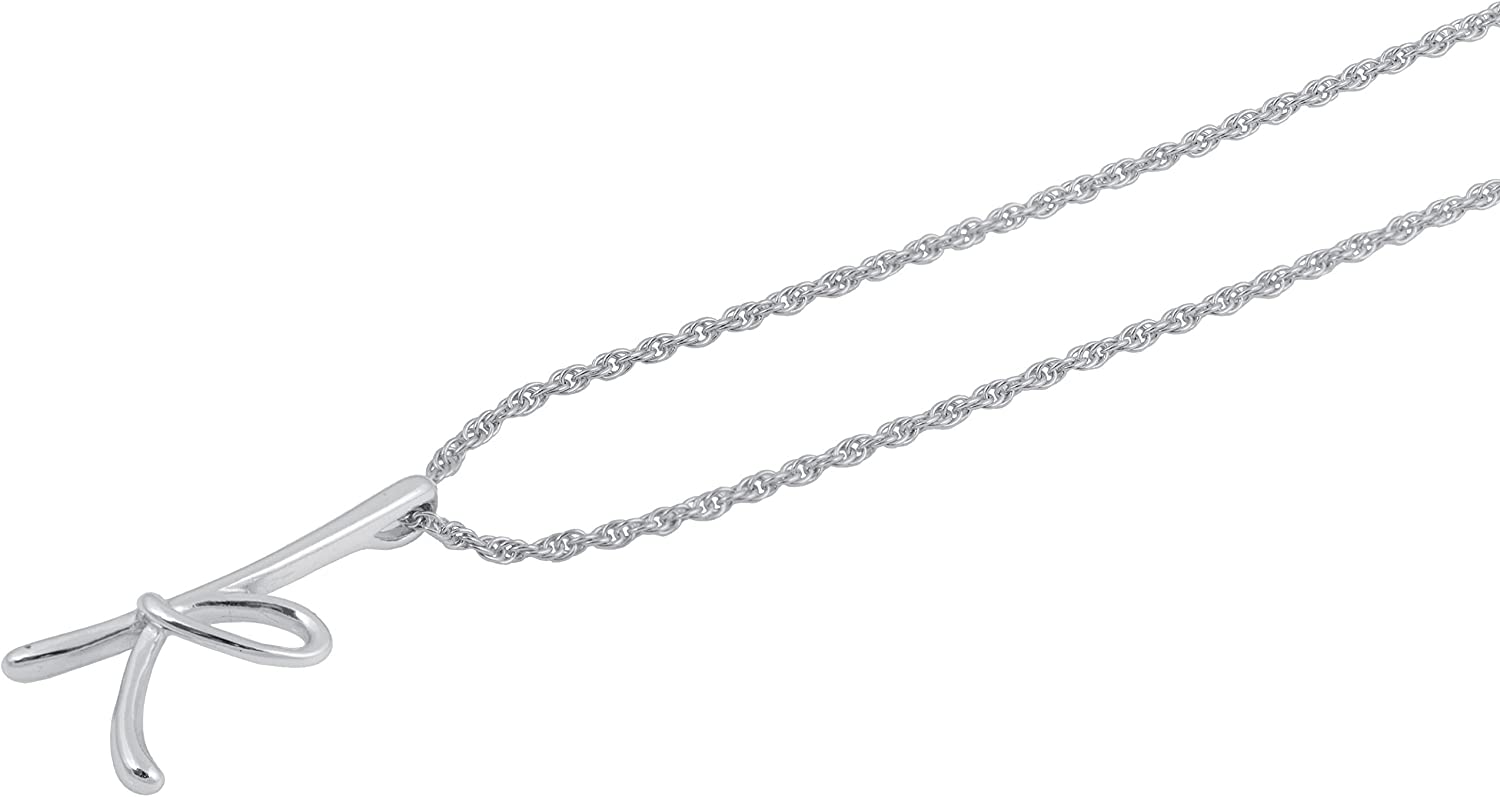• Simple sterling silver necklace featuring script initial pendant suspended from Rope chain
