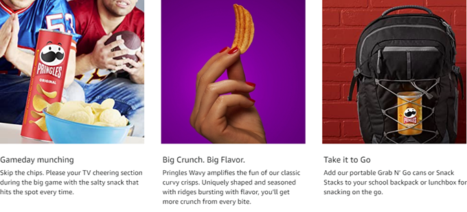 What comes next after the "pop" of an Original Pringles Grab N' Go can? The crisp flavor of the classic Original potato crisp that hits the spot every time. Insanely light, crispy and never greasy, each crisp is ingeniously shaped and satisfyingly tangy. With this convenient individual size can, it's easy to create your own snacking moments wherever and whenever, like grabbing a can as an after-school pick-me-up or packing into lunch boxes; Bring a can for game time plus some for other Pringles fans. Stash a can in your work desk or pantry to enjoy anytime. Share Pringles at your next get-together to turn up excitement among family and friends. Get your hands on Pringles Original Potato Crisps for awesomeness that keeps you coming back, stack after stack.