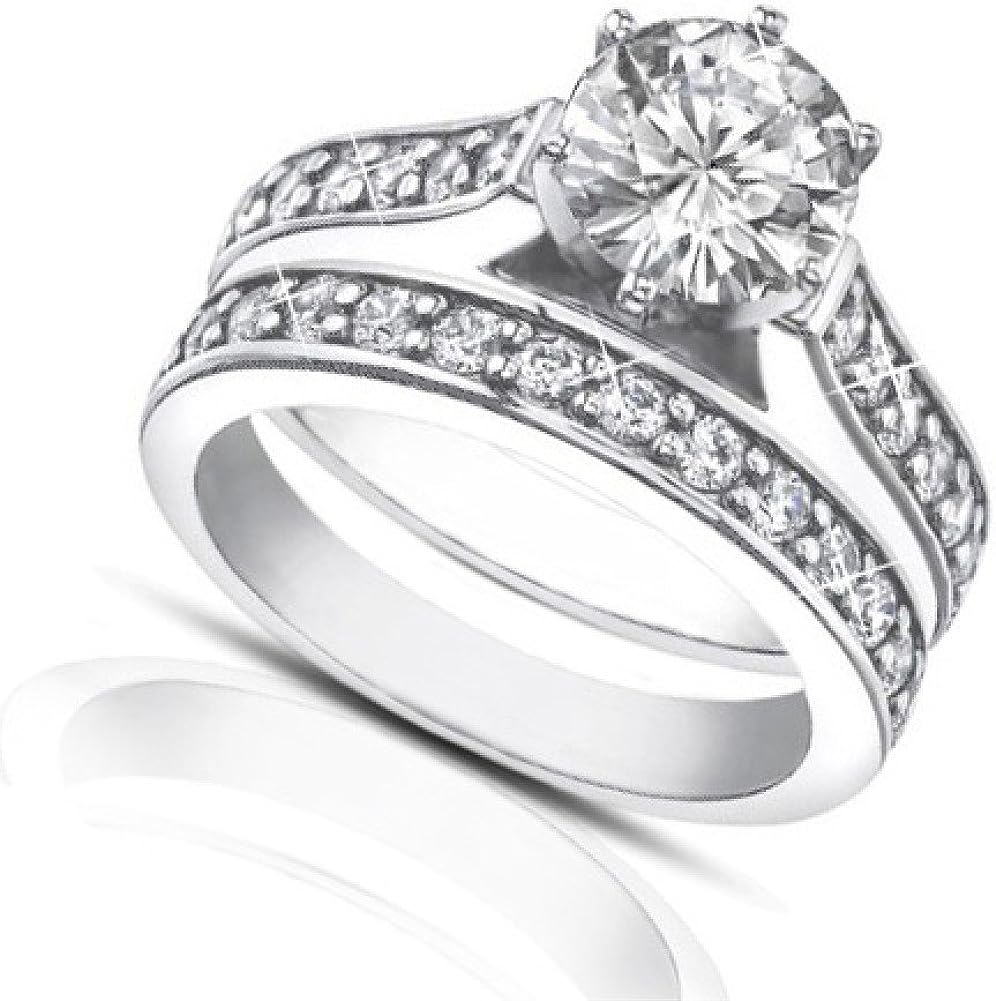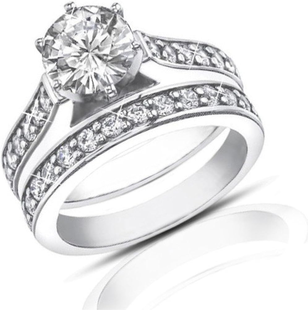 Madina Jewelry 1.80 ct Ladies Round Cut Diamond Engagement Accented Ring Set in Platinum