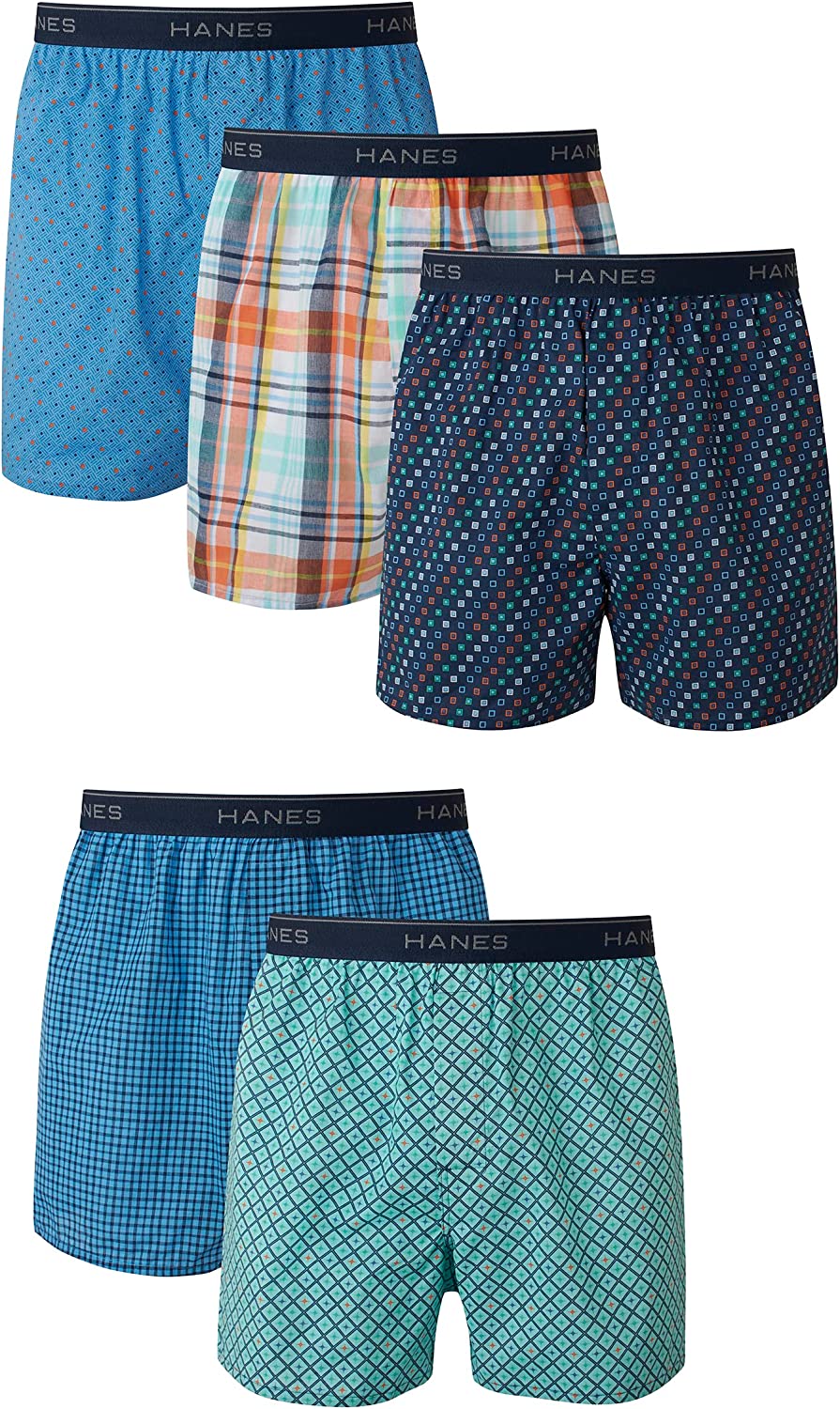 Hanes Mens Tagless Boxer With Exposed Waistband Multi-Packs