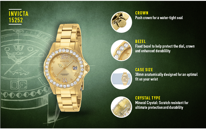 Invicta Women's Pro Diver Crystal Accented 18k Ion-Plated Stainless Steel Watch