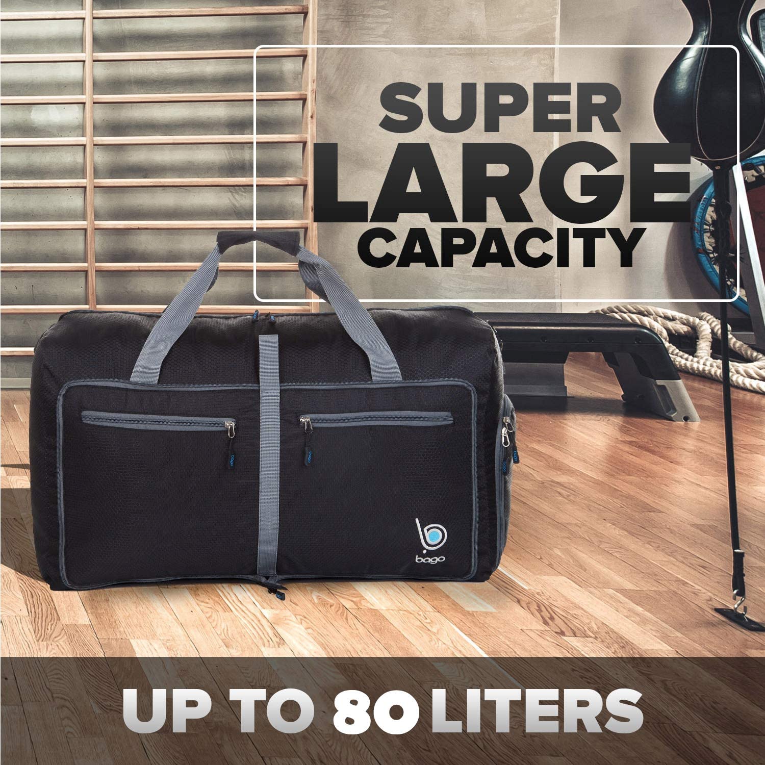 Bago Travel Duffel Bags for Traveling Women & Men- Foldable Weekender Bag - 80L 27" Large Duffle Bag For Travel & Camping Bag - Packable Lightweight Overnight Luggage bag (Black)