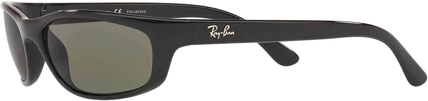Ray-Ban Men's RB4115 Rectangular Sunglasses, Black/Polarized Green, 57 mm
