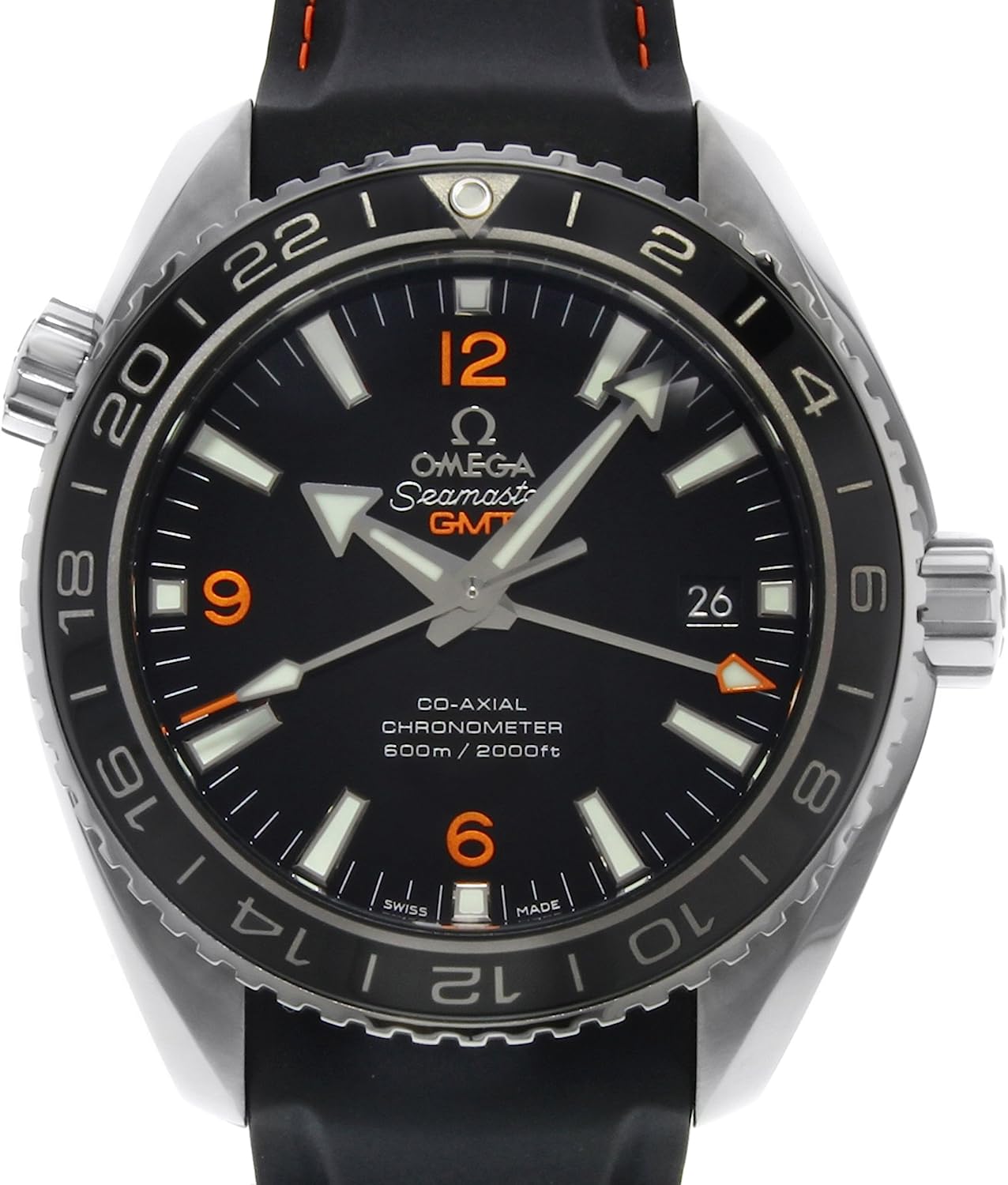 Omega Planet Ocean GMT Black Dial Rubber Strap Mens Watch 23232442201002