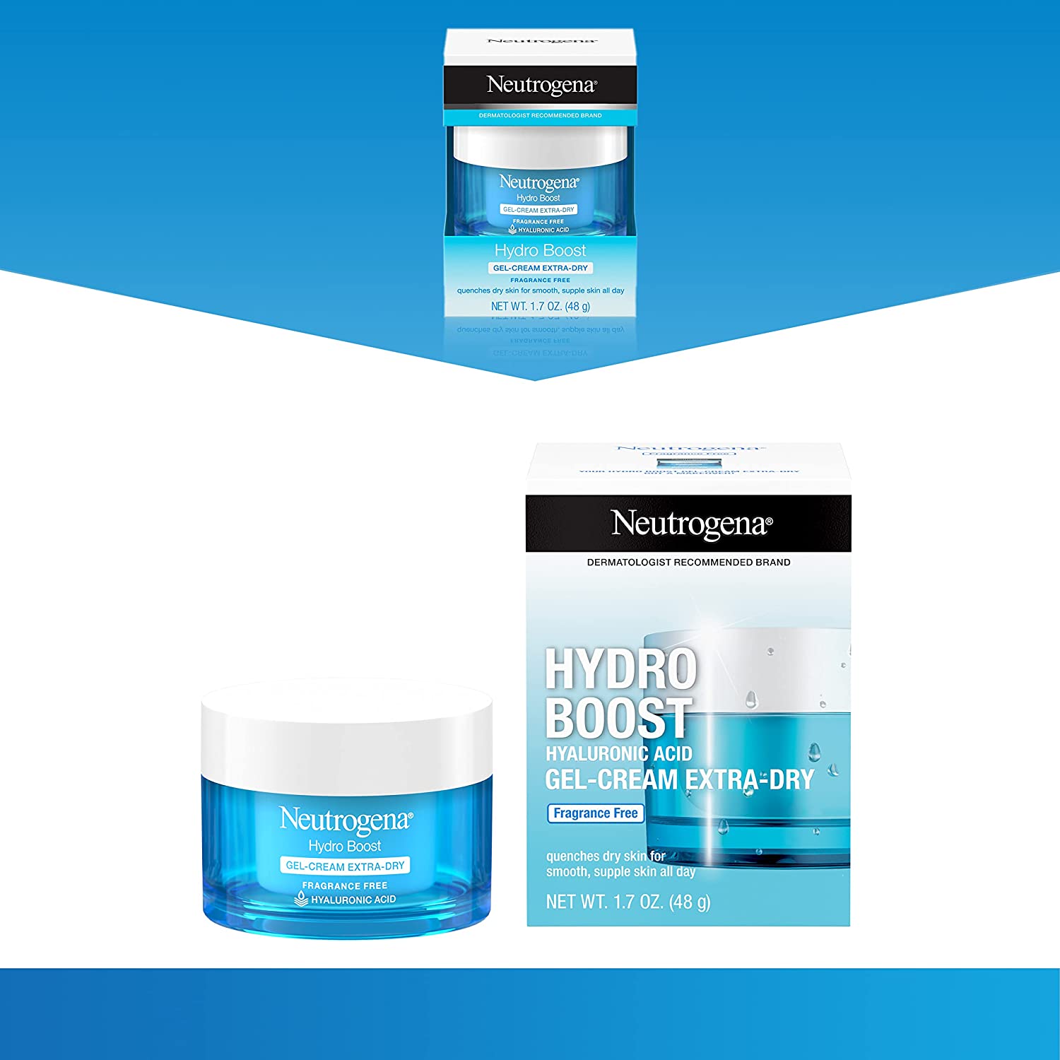 Neutrogena Hydro Boost Face Moisturizer with Hyaluronic Acid for Extra Dry Skin, Fragrance Free, Oil-Free, Non-Comedogenic Gel Cream Face Lotion, 1.7 oz