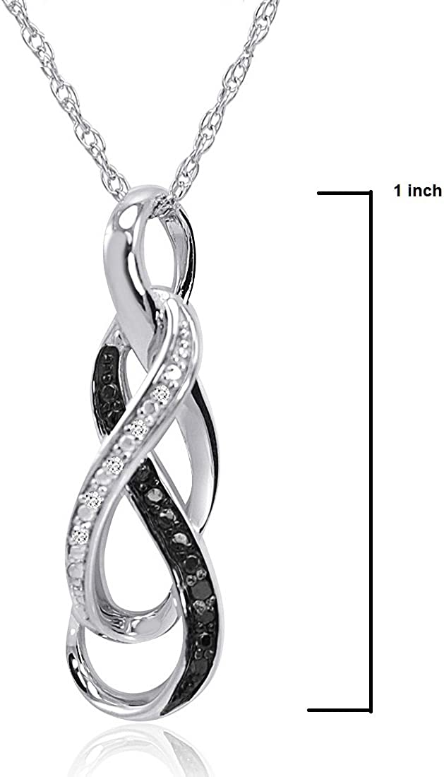 Black and White Diamond Infinity Pendant Necklace in Sterling Silver for Women |Real Diamonds in Real Sterling Silver- on an 18 inch Sterling Silver Chain