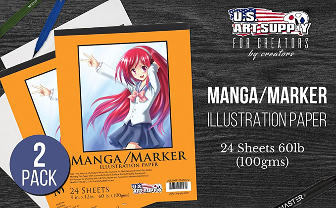 U.S. Art Supply 9" x 12" Premium Manga-Marker Paper Pad, 60 Pound (100gsm), Pad of 24-Sheets (Pack of 2 Pads)