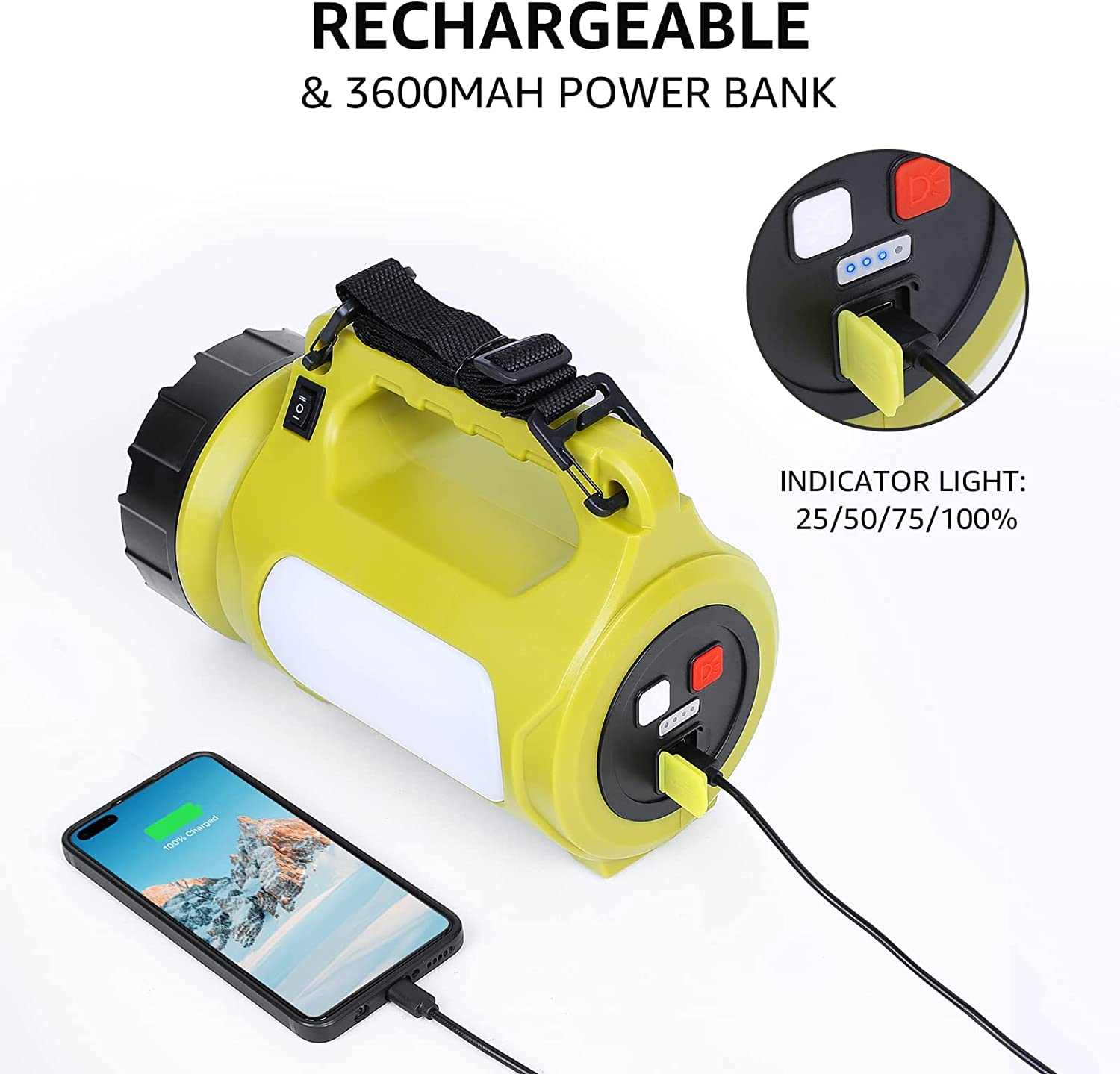 USB Rechargeable with Power Bank Functionality: Our lantern incorporates built-in rechargeable batteries, chargeable through the provided USB cable. Its power bank feature allows it to double up as a charger for your mobile phone, with blue indicators on the base showing the battery level.
