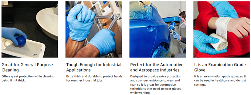 Empower is an 8 mil thick, powder free nitrile exam glove designed to provide extra protection and stronger resistance to wear and tear on the job. The glove fingers are double and almost triple in thickness in comparison to some of the commonly used nitrile exam gloves. With extra thickness, Empowerinchesnitrile glove is more durable and allow you to work on “rougher” jobs and keep your hands protected and safe. Though thicker, the glove provides an excellent grip as a result of our advanced production process. It is great for EMS, law enforcement, correctional facilities, laboratory, mid to heavy mechanics and industrial applications. It also meets the single-use emergency medical examination glove requirements of NFPA (National Fire Protection Association) 1999 – 2013 standard on protective clothing for emergency medical operations.