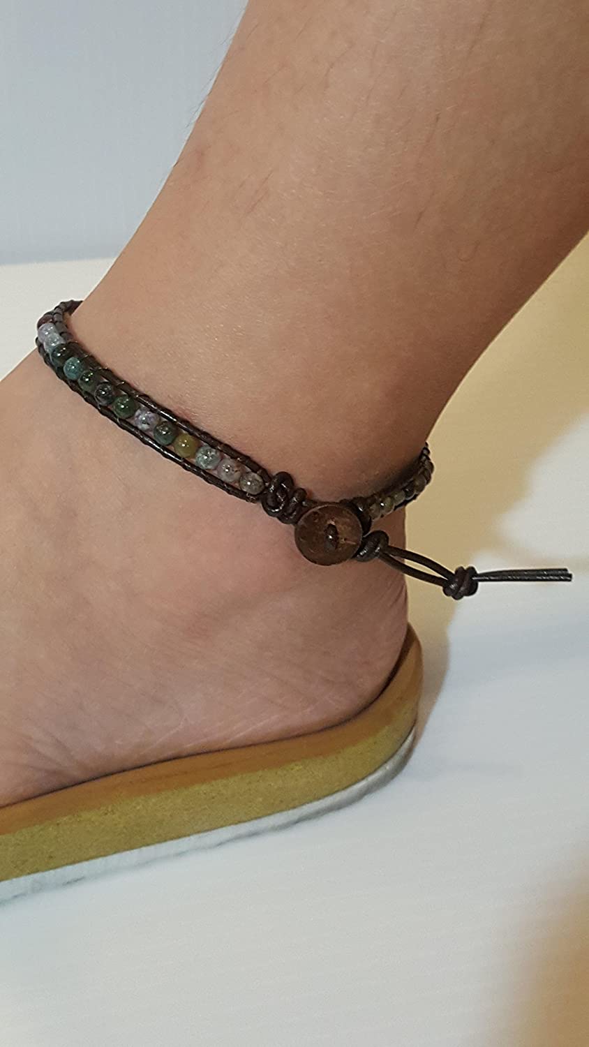 A beautiful Jasper Stone anklet with charms woven with Leather cord.Cute and Bohemian Style.Made from Jasper Stone and leather cord. This gorgeous anklet is perfect for any occasion with the addition of a charm! I use ONLY quality Stone Bead and A great unisex Anklet for that girl or guy. Kindly Note: 1.All these items are handmade so the size of the actual item you received could be slightly different. 2.All natural stones are different and due to photography lighting effects and editing, Due to the quality difference between different monitors, there could be slight differences in the color of the pictures and the actual item.