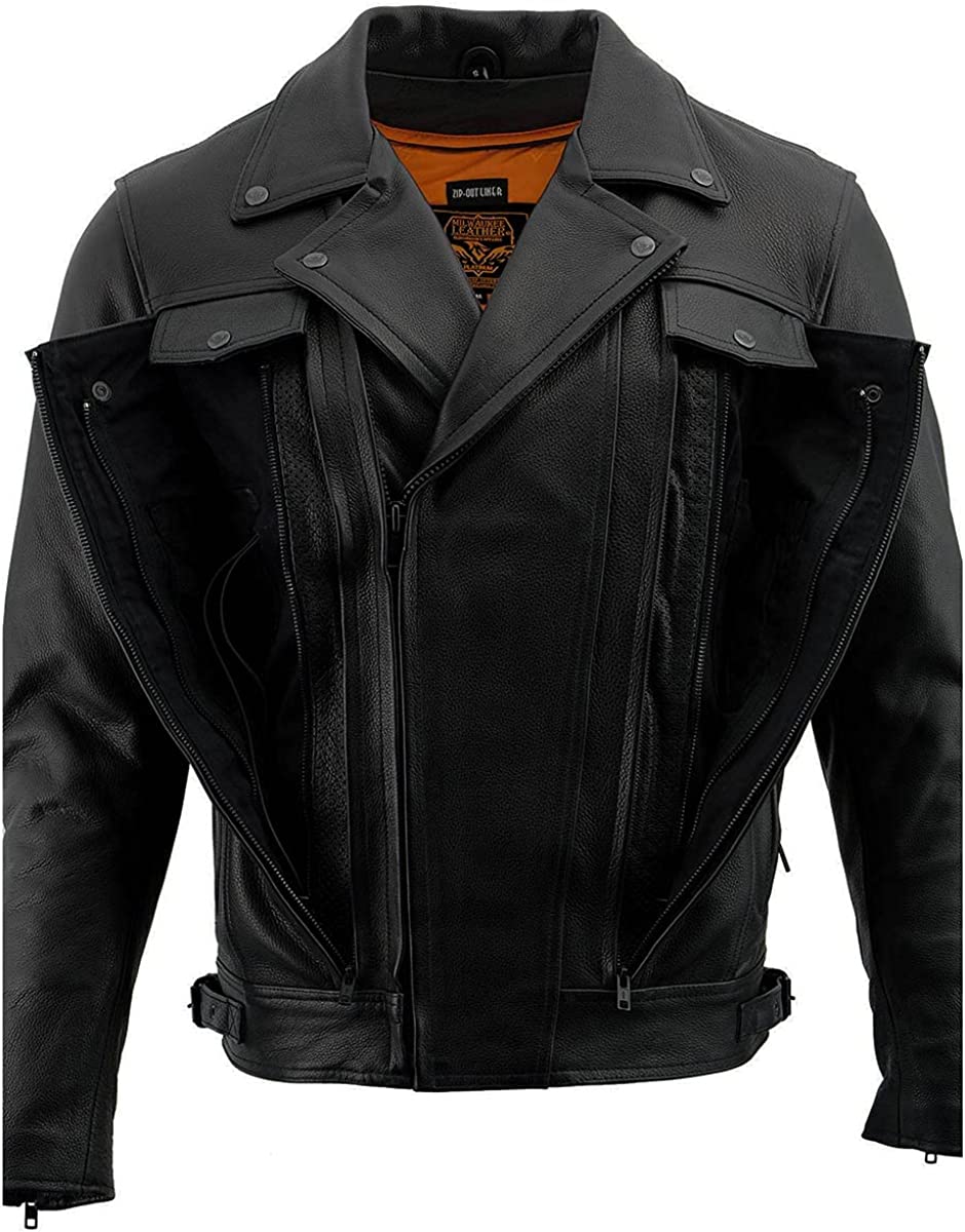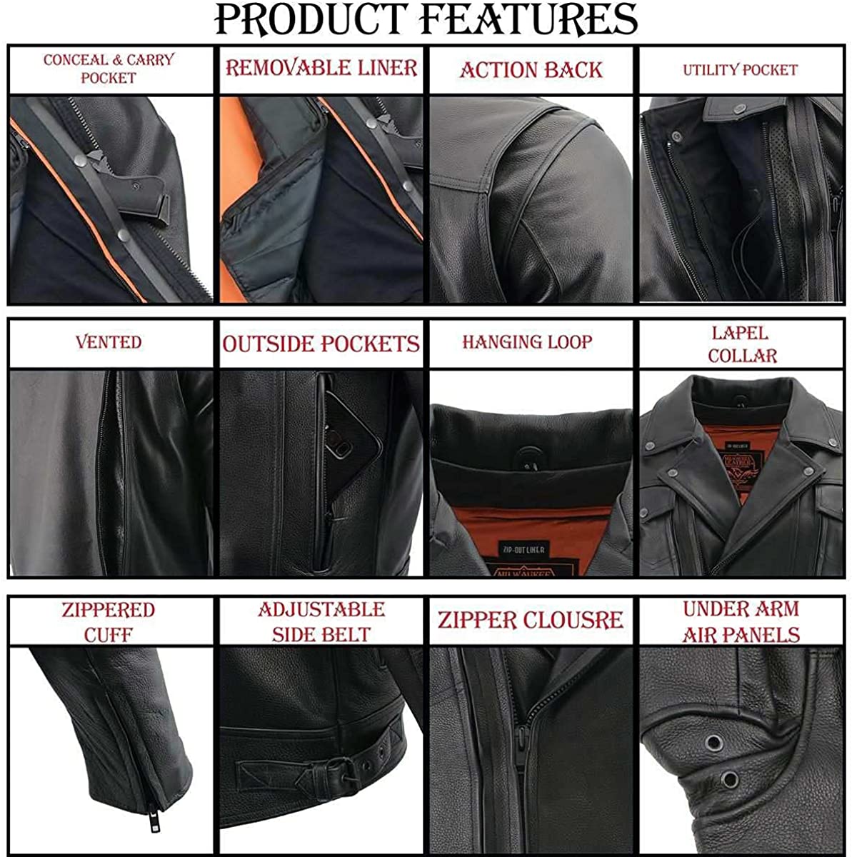 Milwaukee Leather LKM1760 Men's Black Leather Jacket with Utility Pockets