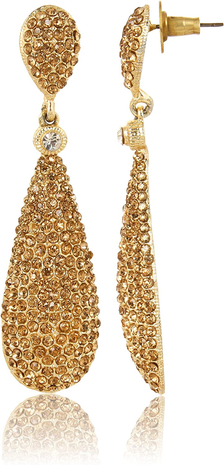 - DESIGN-These elegant Golden Gold Drop Earrings with champagne stones are a classic and will never go out of style.They are the best Chandelier Earrings in gold and can be worn with western as well as traditional outfits.The 180degree rounded shape of the earring adds to the glamour of the diamonds and its resemblance to real jewellery.Women chandelier drop earrings in womens costume jewelry.