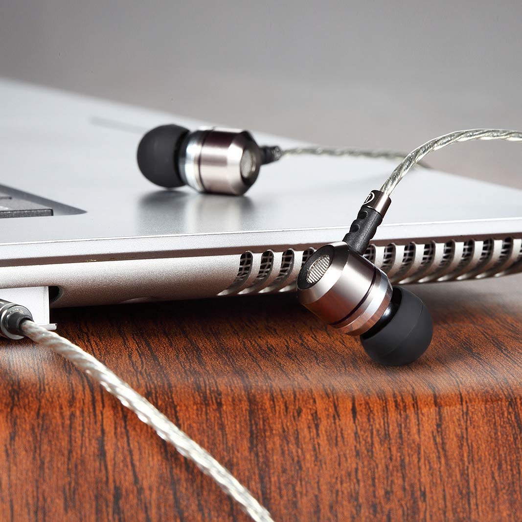 • Headphones closed back in ear design seal the sound in so they are also ideal for train, bus, commuting, school; Metal earphone construction and lightweight aluminum earbud housing generates pure audio, makes the bass more mellow and layered