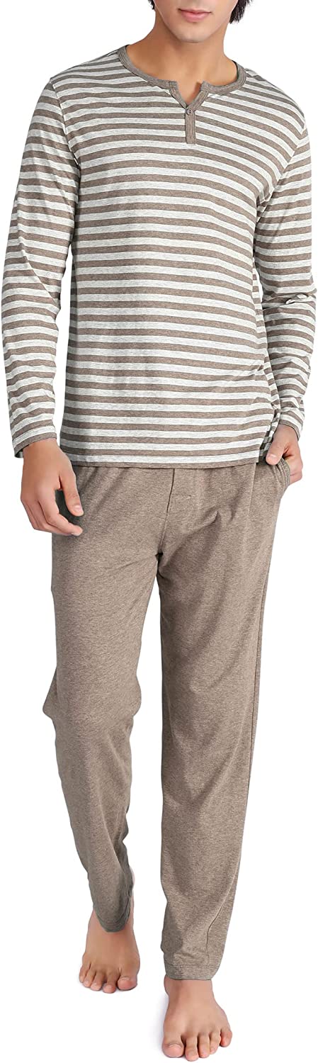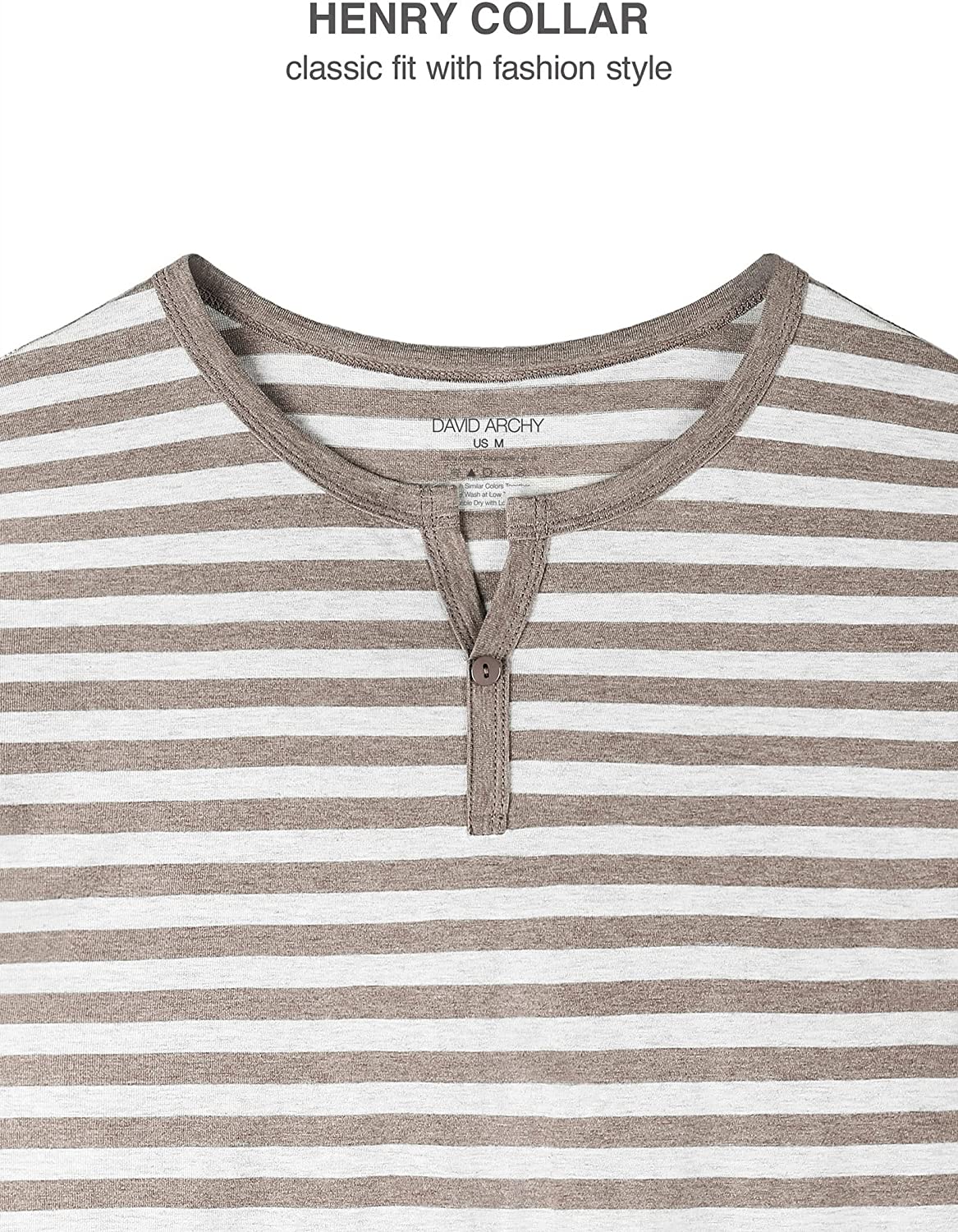 DAVID ARCHY Men's Cotton PJs Heather Striped Sleepwear Lounge Wear Top & Bottom Pajama Set