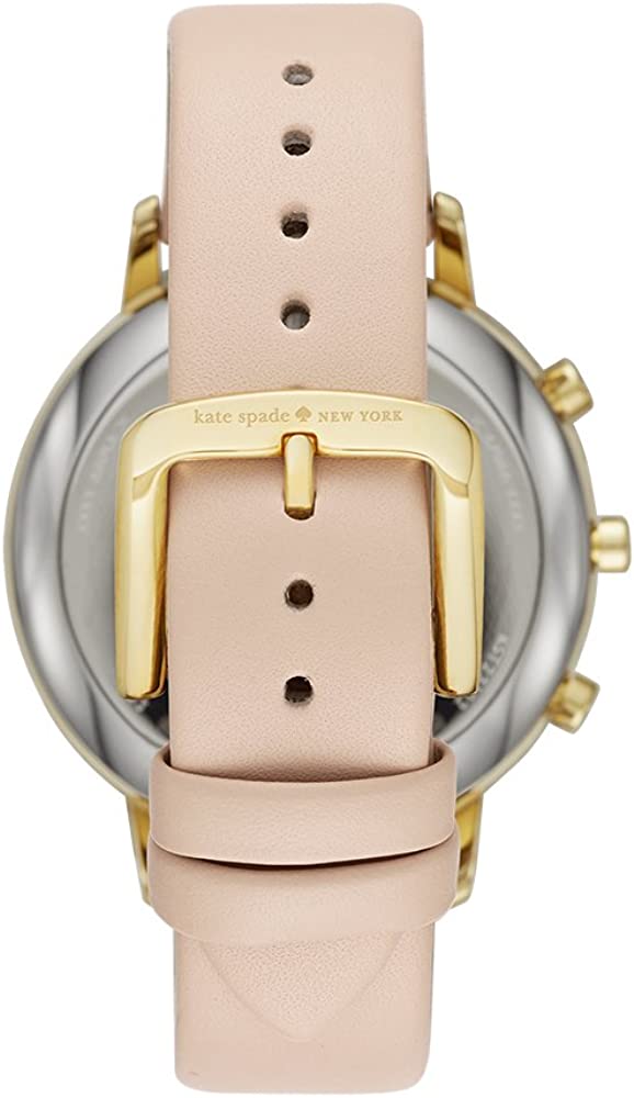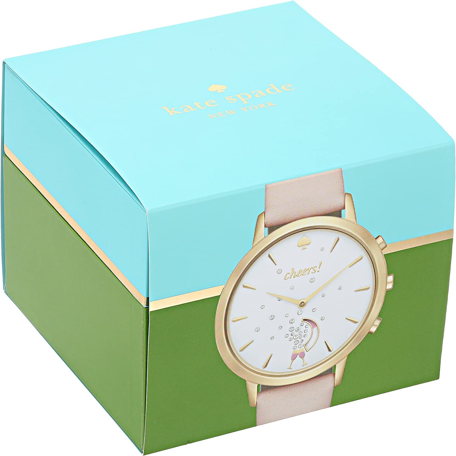 Your watch alerts you with light notifications, controls music, automatically updates time zones, takes selfies and never needs charging. And, with a vachetta leather strap, gold-tone case and classic white dial (with champagne glasses spouting crystal bubbles at the six o'clock index), it's as chic as it is functional. Compatible with Android OS 4.4+ or iPhone 5/iOS 8.2+ and bluetooth smart enabled / 4.1 low energy. The battery life can be up to 6 months and your package includes a caseback changing tool.