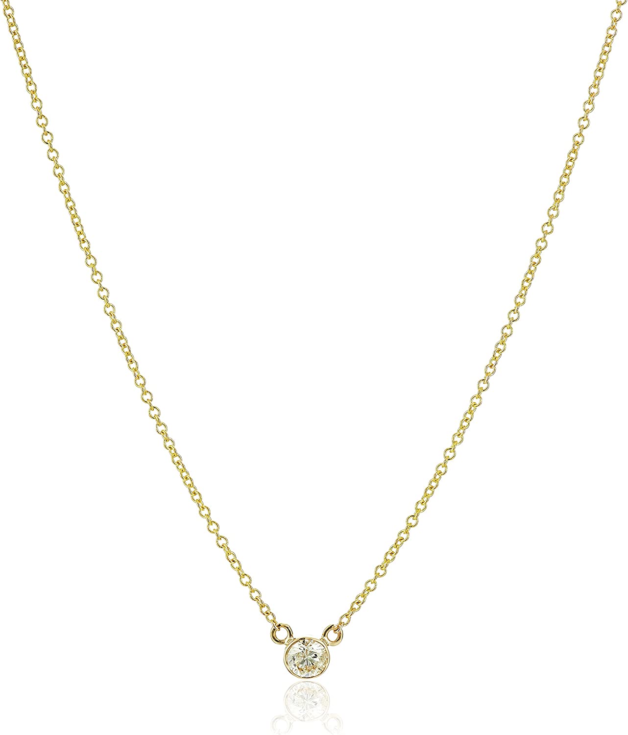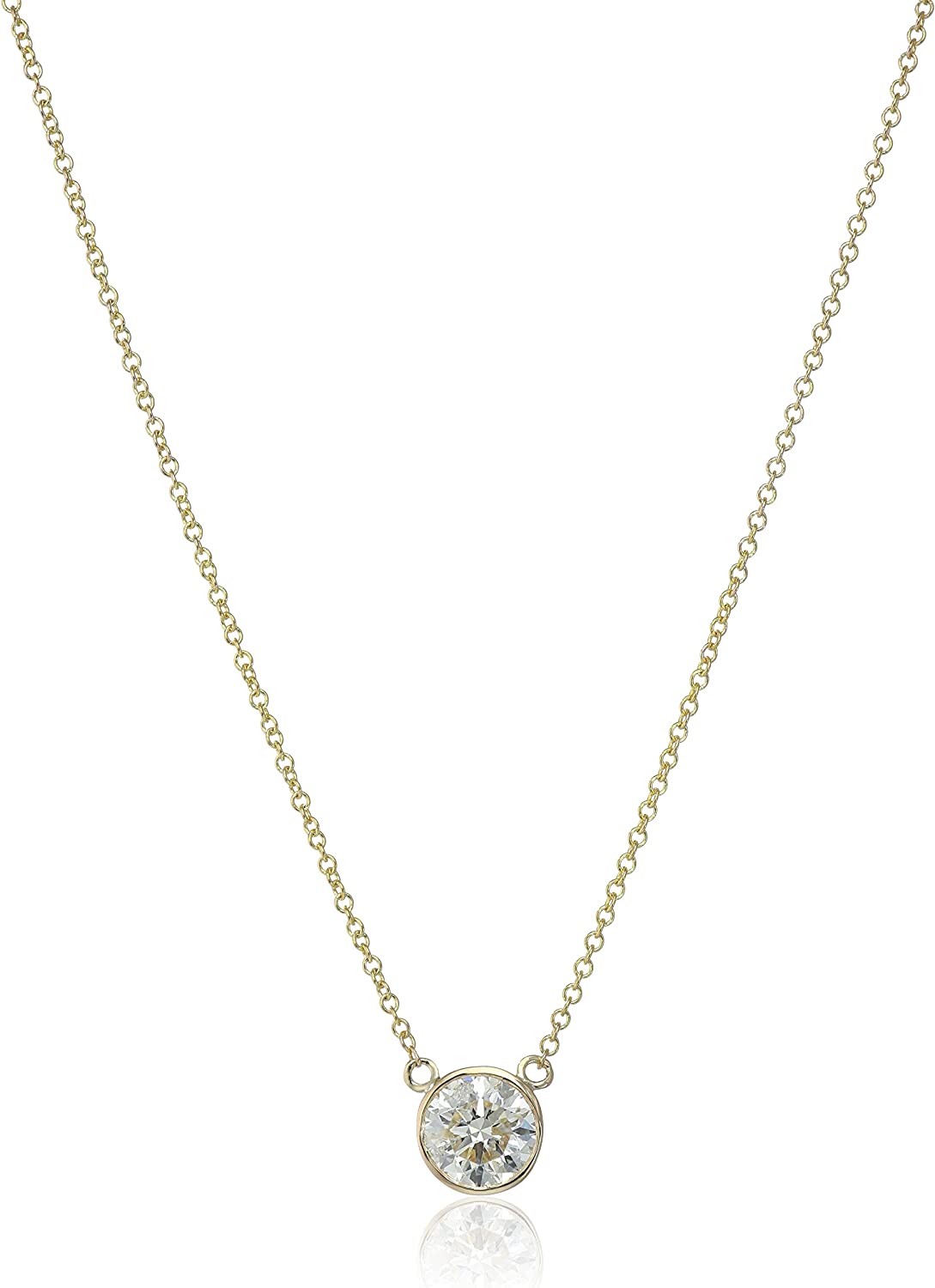 Argos Collection 14k Gold Bezel Set Solitaire Adjustable Pendant Necklace, 16" + 2" Extender