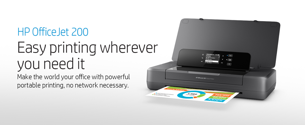 Make the world your office with powerful portable printing—no network necessary. This quick, quiet printer delivers more pages per cartridge and has a long- lasting battery life. Ideal for mobile professionals and telecommuters who need a high-quality, reliable, portable printer they can take virtually anywhere. Easy portable printing wherever you need it: Simply print from your laptop or mobile devices wirelessly, with or without a router. This durable, compact printer fits in your car, backpack, and more, for convenient printing anywhere. Start printing in minutes. HP Auto Wireless Connect makes setup easy. Lead the way with fast, easy mobile printing. Reduce charging interruptions with a long-lasting battery. Stay productive with a large and easy-to-use control panel. Set the pace for success wherever you go. Keep moving through the day with fast print speeds. Get the highest page yields of any other in-class printer, using Original HP cartridges. High-powered quality and reliability: Power through the workday. Charge from home, in your car or office, and more. Get high-quality prints time after time with a printer designed and built to be reliable. Minimize disruptions with premium design and quiet performance. Impress clients, without noisy interruptions. Plug in your AC power source to charge within 90 minutes while the printer is off, with HP Fast Charge.