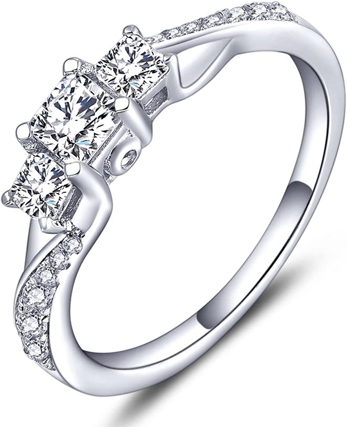 YL Women's Sterling Silver Clear Birthstones 3-stone Princess Cut Wedding Rings for Engagement Jewelry