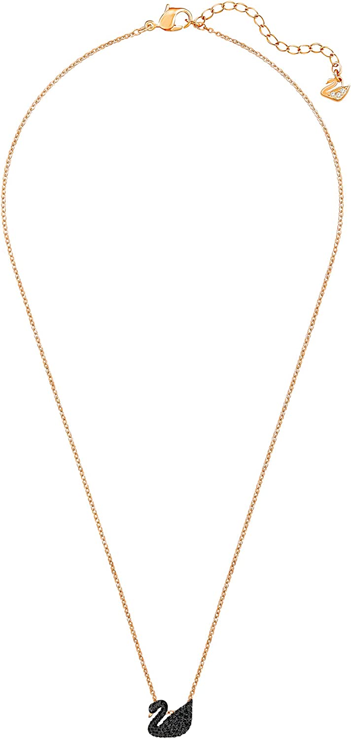 • Items delivered: (1) Swarovski Iconic Swan necklace, 3/8 x 1/2 inch iconic swan pendant with black crystal pavé on a rose-gold tone plated chain, length 14 7/8 inches, with Swarovski necklace box