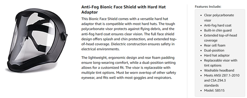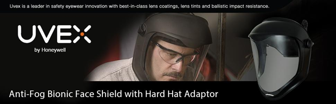 Included Components‎Uvex Bionic Face Shield with Hard Had Adapter and Clear Polycarbonate Anti-Fog/Hardcoat Visor (S8515)