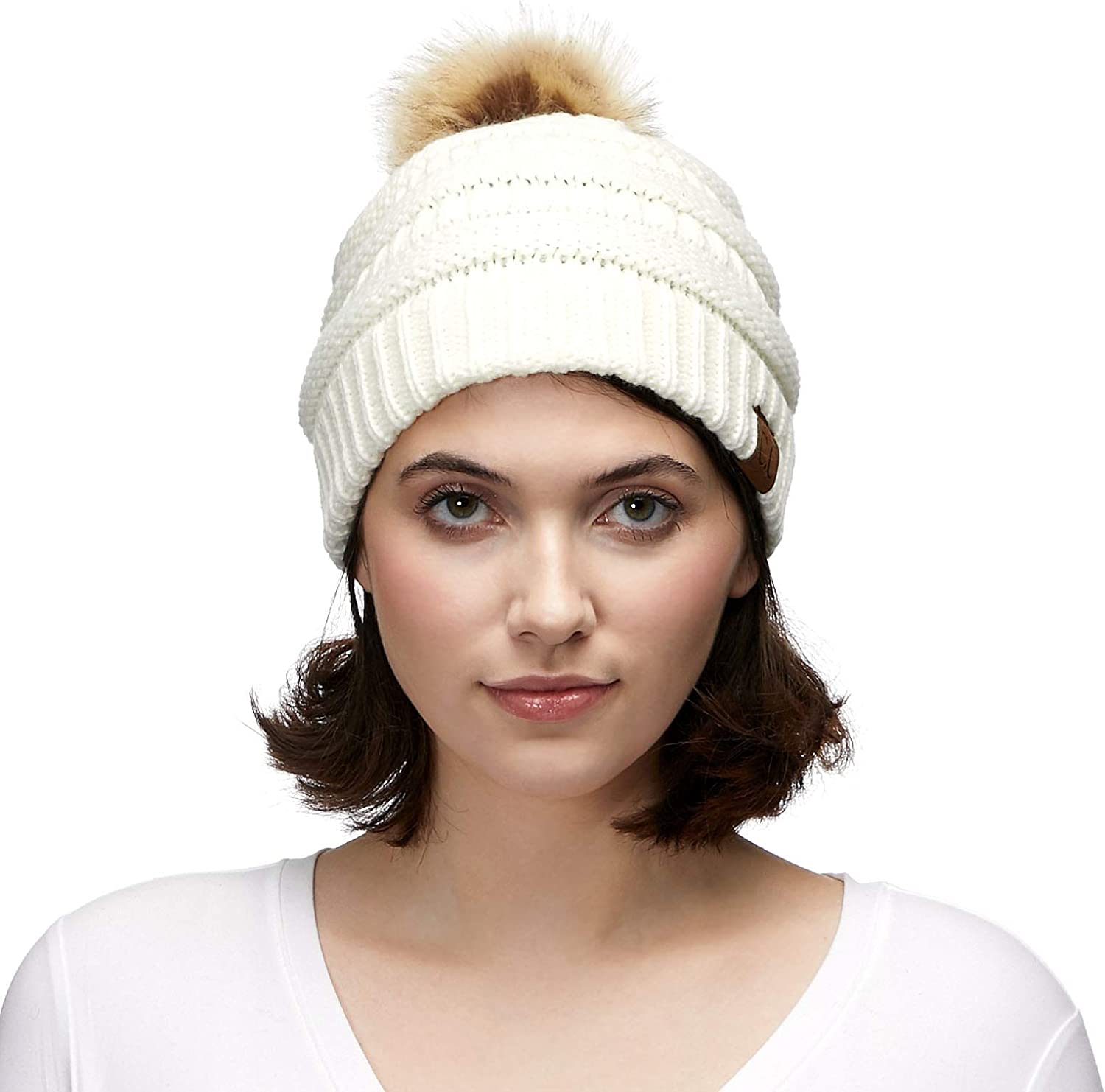 C.C Hatsandscarf Exclusives Unisex Solid Ribbed Beanie with Pom (HAT-43)