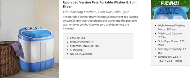 | Included Components | Compact 2-in-1 Washer & Dryer |