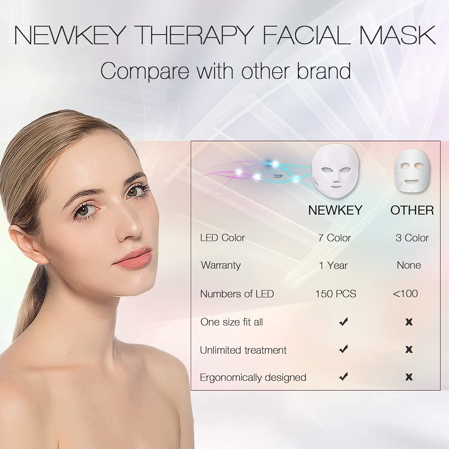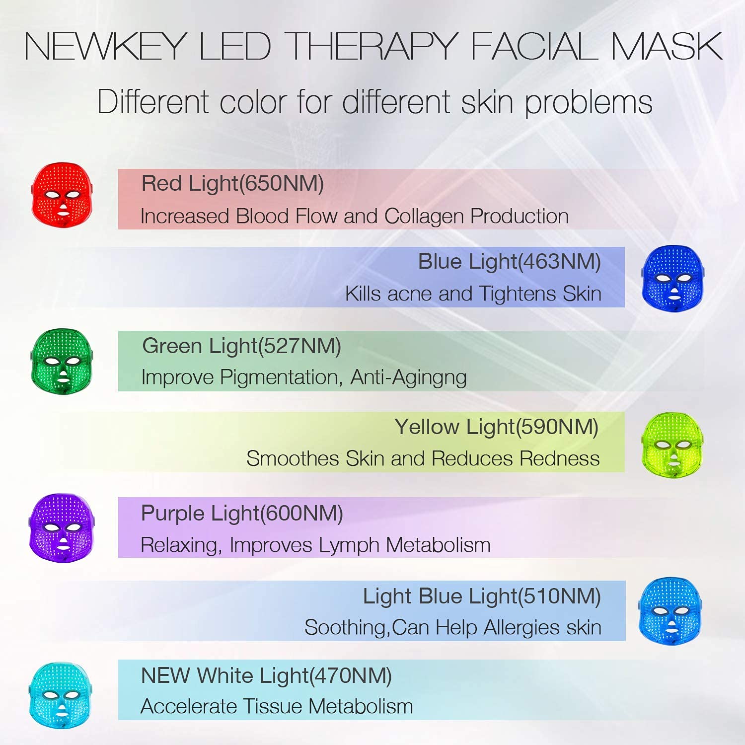 NEWKEY 7 Colors in One led therapy mask,each color has its effect, it can meet your various beauty needs, help skin rejuvenation.