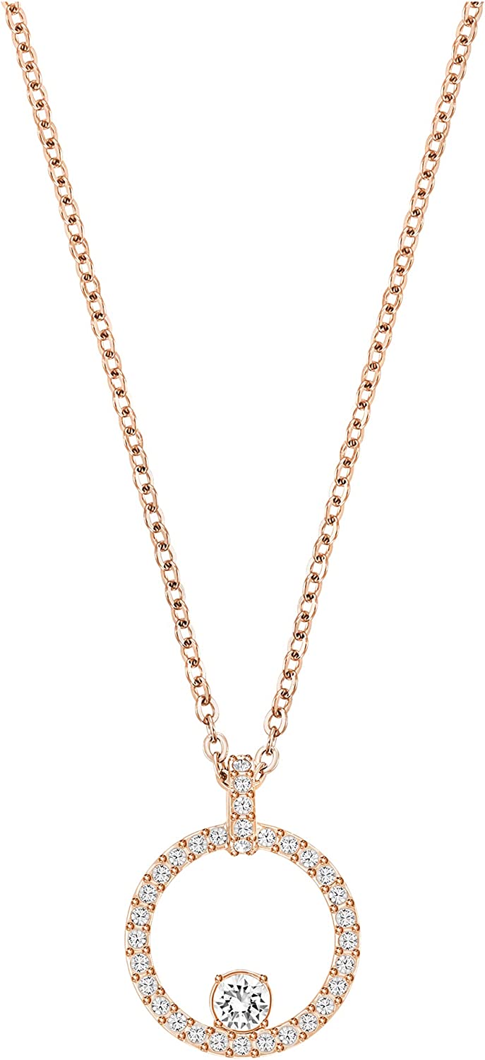 Items delivered: 1 x Swarovski Creativity Collection necklace, 14 7/8 inch chain, 5/8 x 3/4 inch rose-gold tone plated, clear crystal circular design pendant, with Swarovski necklace box