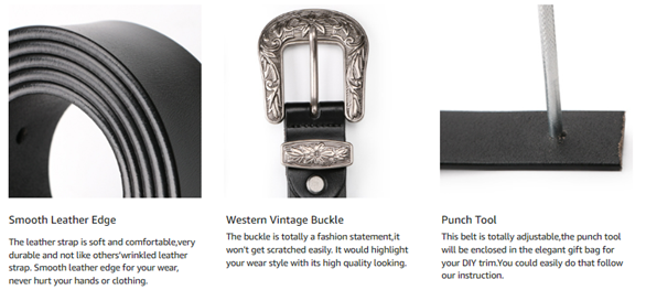 • ✦ Detailed data and Material -Belts strap: 1.1". Buckle length and width: 2.39", 2.1". The strap is made of high quality leather, the buckle is made of zinc alloy, shiny and durable.