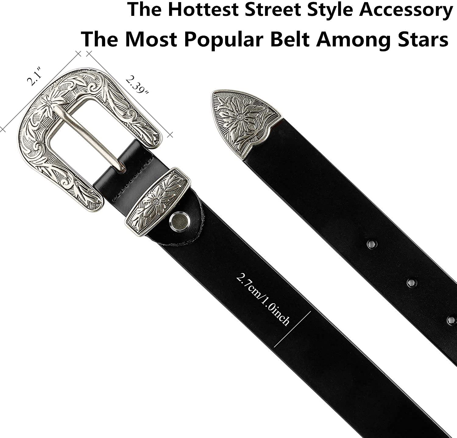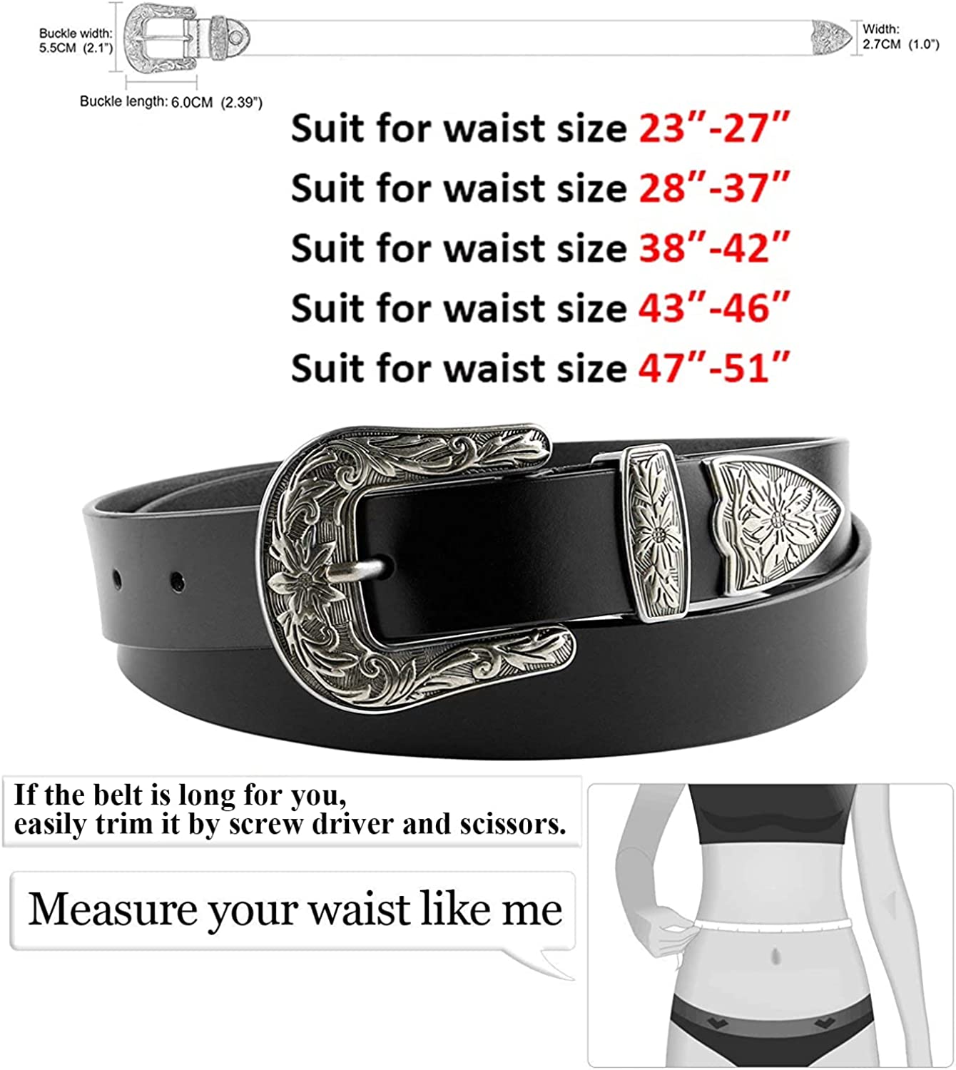 JASGOOD Women Leather Belts Ladies Vintage Western Design Black Waist Belt for Pants Jeans Dresses