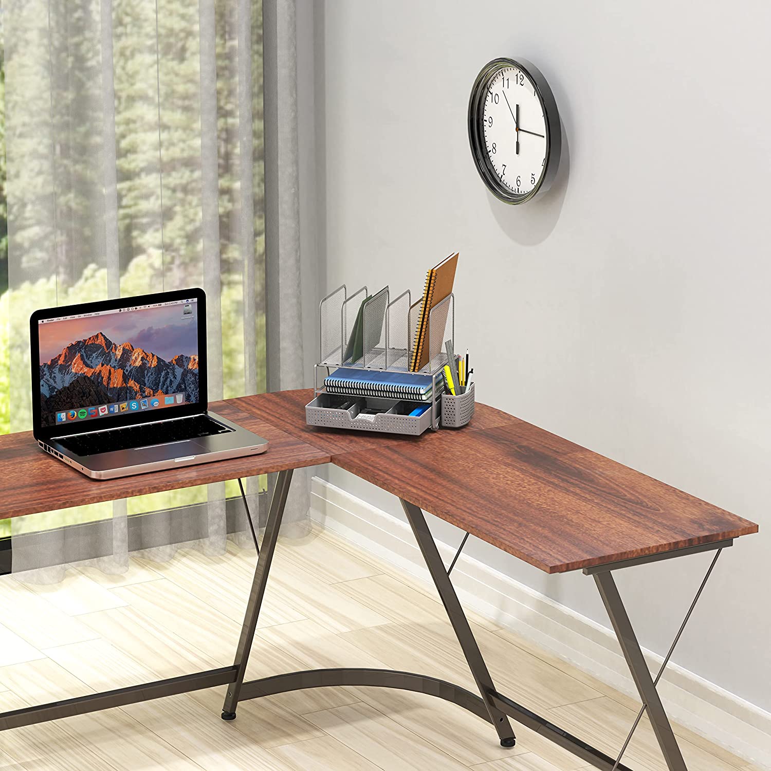 SimpleHouseware Mesh Desk Organizer with Sliding Drawer, Double Tray and 5 Upright Sections, Black