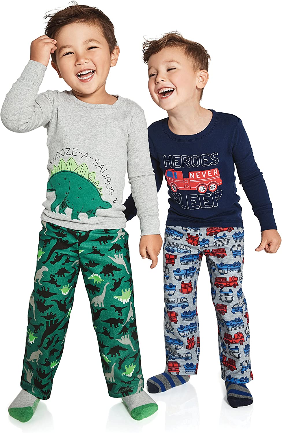 4-Piece pajama set includes 2 long sleeve cotton tops with 2 cozy fleece pants