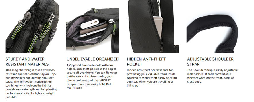 • ✅【Multiple storage purpose sling bag】Large main compartment with inner open cellphone pouch is perfect for iPad Mini with cover, Kindle, Small notebooks, Large cellphone. 4 front zippered pockets are great for various of small items.