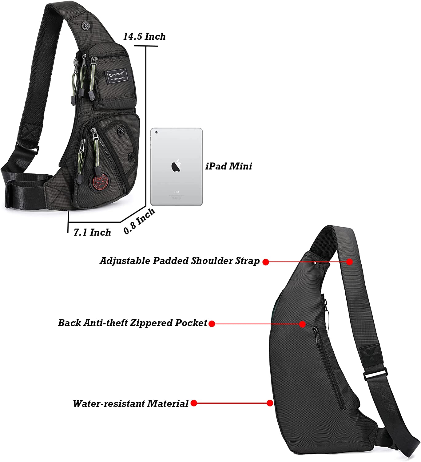 Nicgid Sling Bag Chest Shoulder Backpack Fanny Pack Crossbody Bags for Men