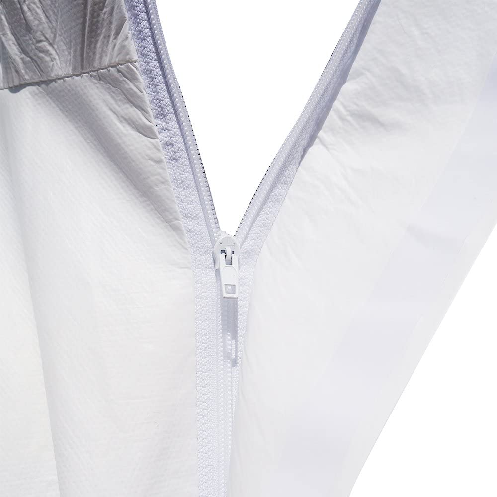 - Elastic at Cuffs,ankles,waist design;Zip front opening,serged seams and attached hood help reduce exposure