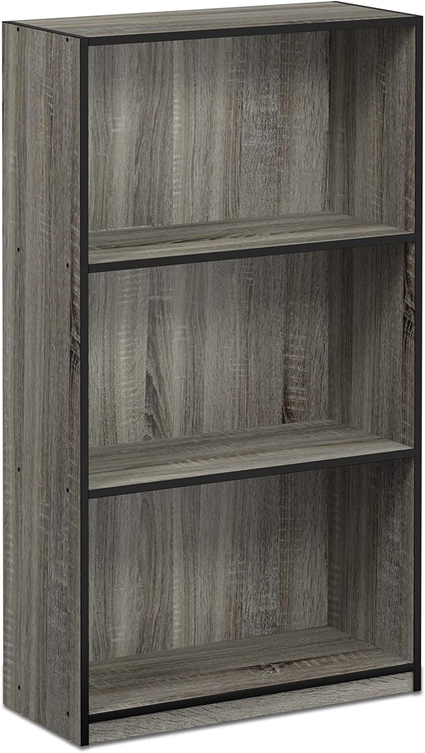 Furinno Basic 3-Tier Bookcase Storage Shelves, French Oak Grey