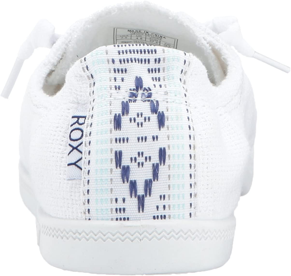 Shoes for women constructed with a textile upper, elasticized top line with embroidered or printed heel detail and Roxy flay label. Memory foam padded canvas insole with graphic print terry cloth lining and flexible tpr injected outsole with molded arch detail outsole.