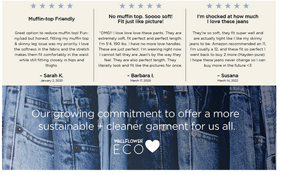 • ECO LOVE: WallFlower’s growing commitment to offer a more sustainable products & cleaner garments for all of us. We are on a journey to craft garments that are more mindful by using cleaner processes, recycled paper tags and more eco materials.