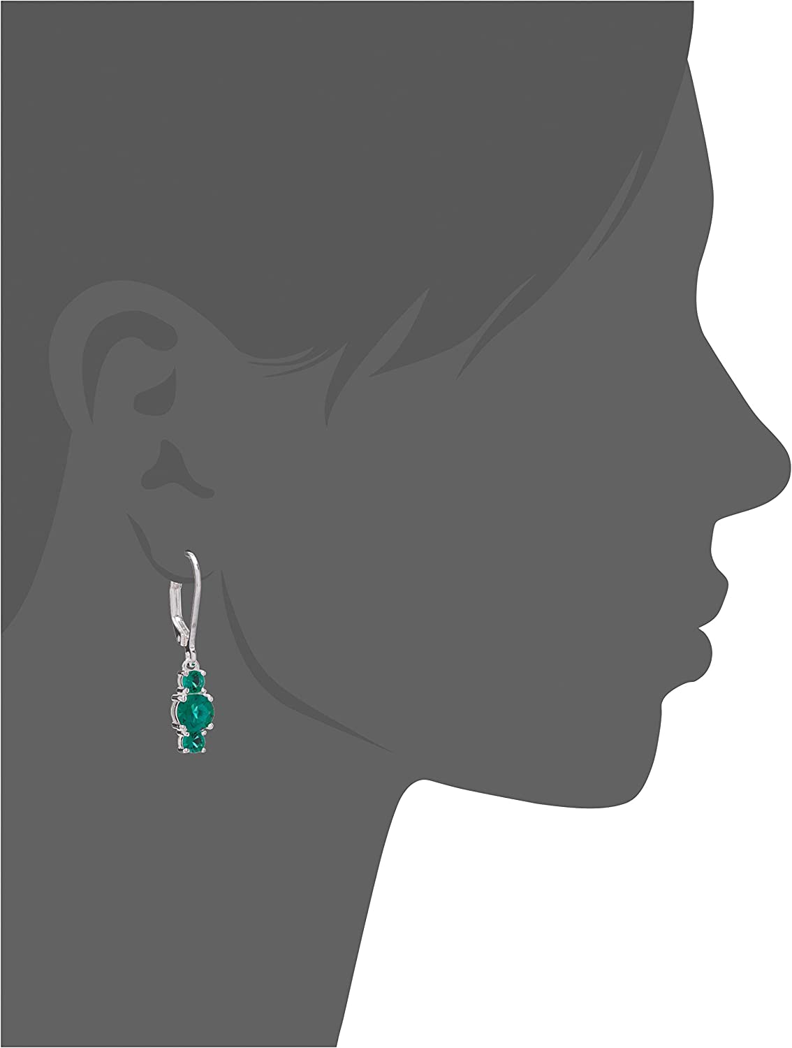 Amazon Collection Sterling Silver Genuine and Created Gemstone Three Stone Birthstone Leverback Dangle Earrings