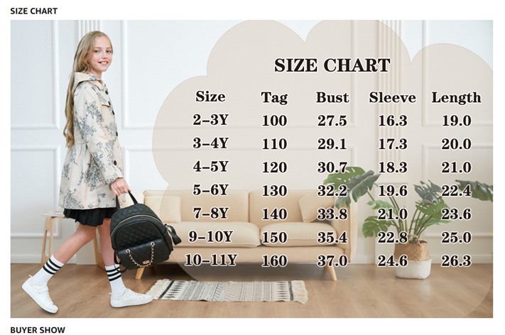 BINPAW Girl's Hooded Trench Coat